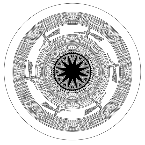 Hoa văn mặt trời 12 cánh cùng hoa văn hình học và chim Tiên.