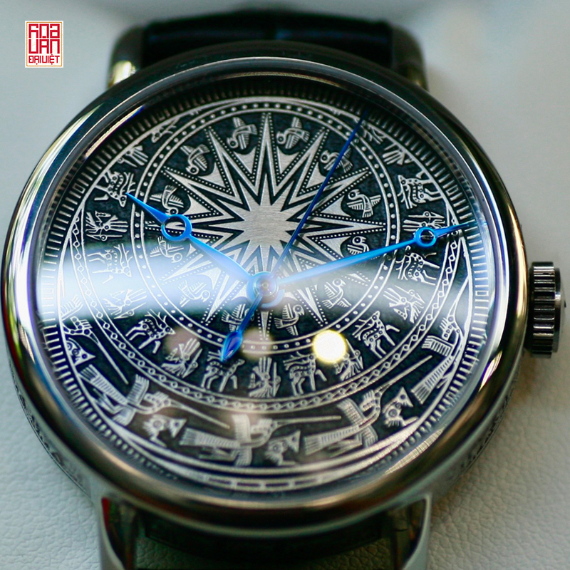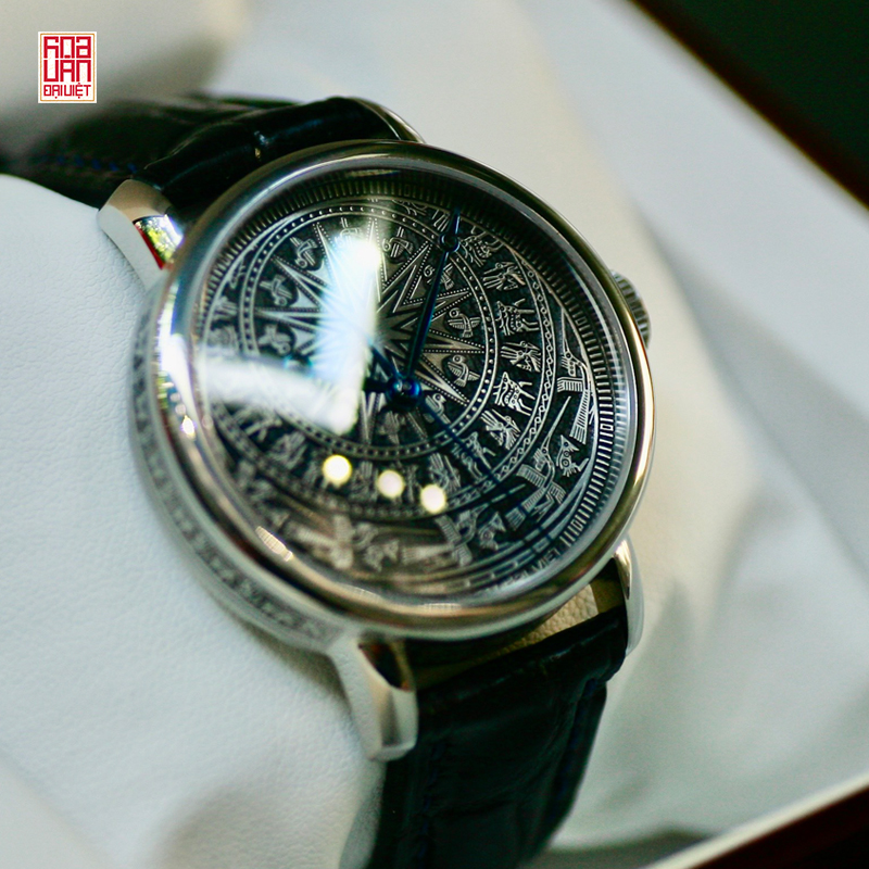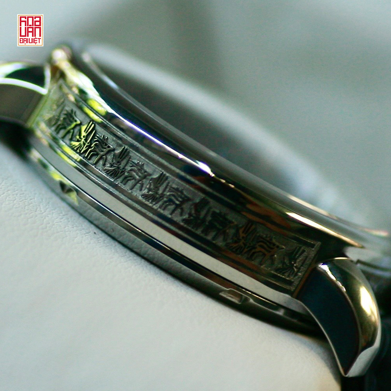 – Mặt số họa tiết trống đồng Đông Sơn (chất liệu inox hoặc đồng tùy chọn)