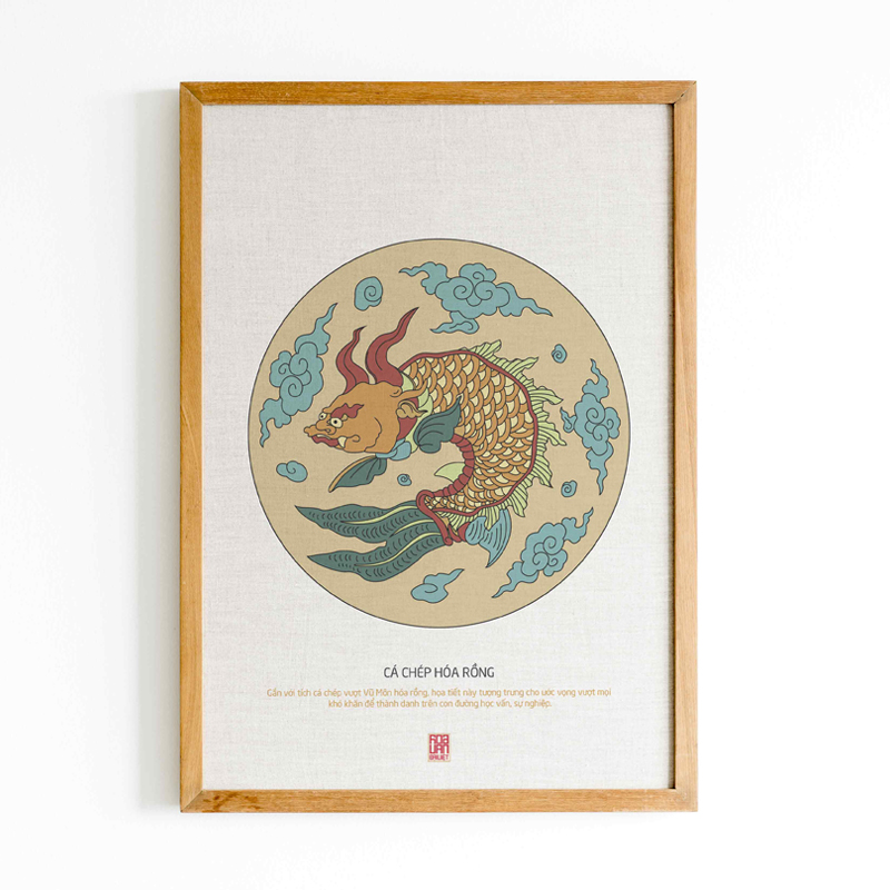 Mỗi bức tranh đều có chú thích về nguồn gốc của hoa văn.