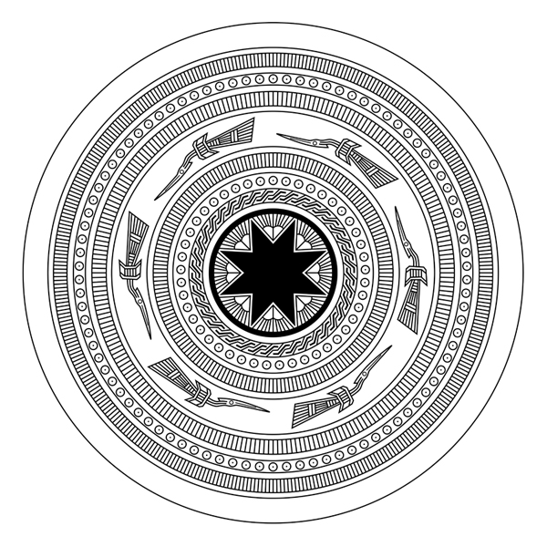 Hoa văn mặt trời 8 cánh cùng hoa văn hình học và chim Tiên.