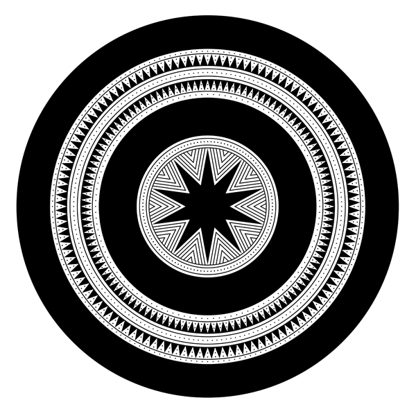 Hoa văn mặt trời 10 cánh cùng hoa văn hình học.