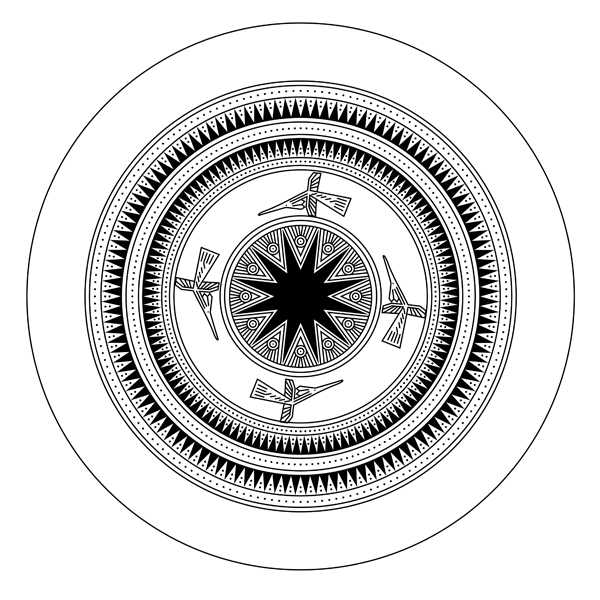 Hoa văn mặt trời 12 cánh cùng hoa văn hình học và chim Tiên.