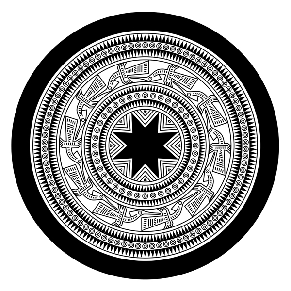 Hoa văn mặt trời 8 cánh cùng hoa văn hình học và chim Tiên.