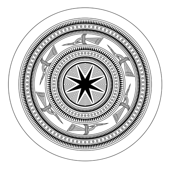 Hoa văn mặt trời 8 cánh cùng hoa văn hình học và chim Tiên.
