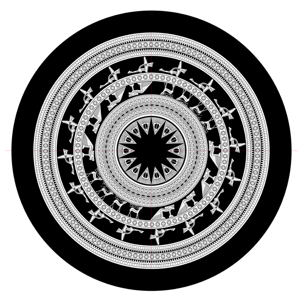 Hoa văn mặt trời 14 cánh cùng hoa văn hươu, rồng, hình học và chim Tiên.
