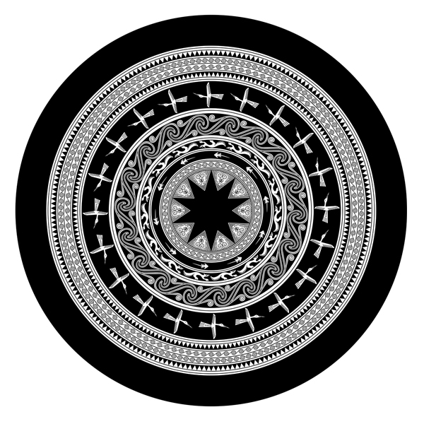 Hoa văn mặt trời 10 cánh cùng hoa văn rồng, sam, hình học và chim Tiên.