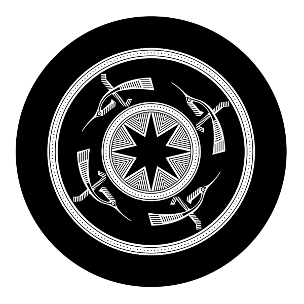Hoa văn mặt trời 8 cánh cùng hoa văn hình học và chim Tiên.