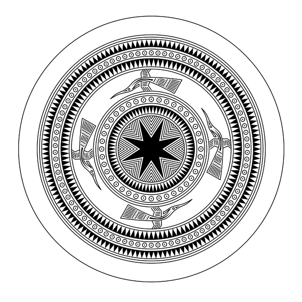 Hoa văn mặt trời 8 cánh cùng hoa văn hình học và chim Tiên.
