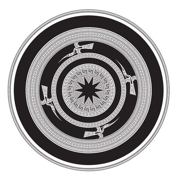 Hoa văn mặt trời 10 cánh cùng hoa văn hình học và chim Tiên.