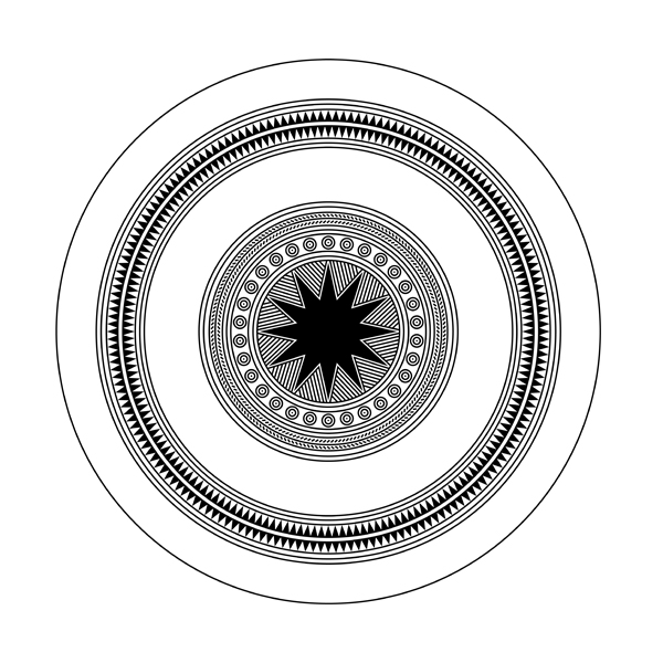 Hoa văn mặt trời 12 cánh cùng hoa văn hình học.