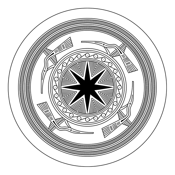 Hoa văn mặt trời 8 cánh cùng hoa văn hình học.